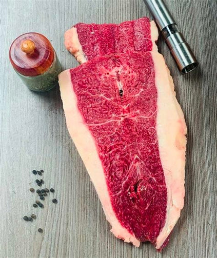 Corte Colombiano, Punta Gorda en Mariposa, Punta de Anca de Res Natural, Ganado Selecto. Cebado en libertad en pasturas tropicales; solo con pastos, arboles y arbustos. Sin alimentos industriales, sin pollinaza, sin hormonas, sin inyecciones, esteroides, ni medicamentos.